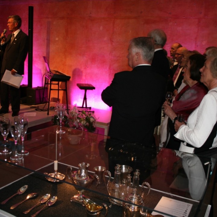 Marianne Jansson, änka till före detta sotaremästaren Bertil Jansson, fick under kvällen tillfälle att lämna över Lars Bjuggs käpp till Anders Grahn kassör i Stiftelsen. Som i sin tur lämnade den till Sergei Muchin för att förvaras med den Bjuggska silversamlingen på Jönköpings Läns Museum.