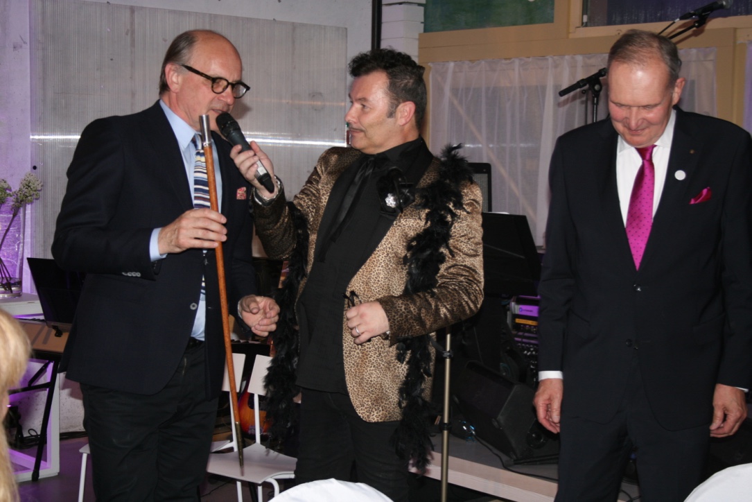 Thomas Tegnér gjorde ett utomordentligt arbete som konferencier för kvällen. Thomas har alltid nära till skratt och var själv en stor bidragande faktor till skratten denna kväll. Succén var ett faktum när han under showen bytte från lack- till klackskor och virade sin fjäderboa runt halsen. Och helt naturligt hade han tillsammans med skickliga Consoul och kören från Södra Vätterbygdens Folkhögskola för första gången tagit musikalen Cabaret till länsmuseet.